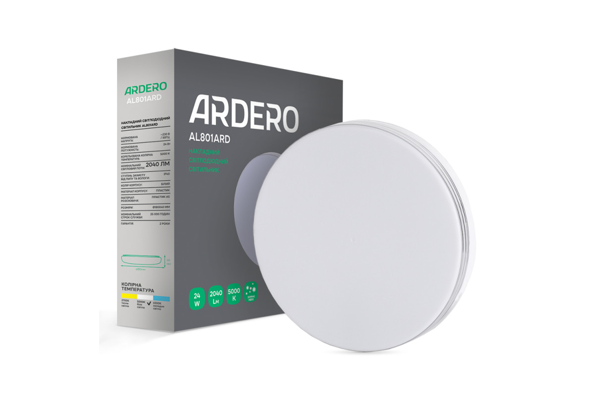 ❓ Як замовити Світлодіодний накладний світильник Ardero AL801ARD 24Вт 5000K білий з доставкою?