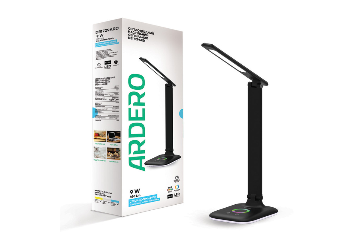 ❓ Як замовити Світлодіодний настільний світильник Ardero DE1729ARD 9Вт чорний з доставкою?
