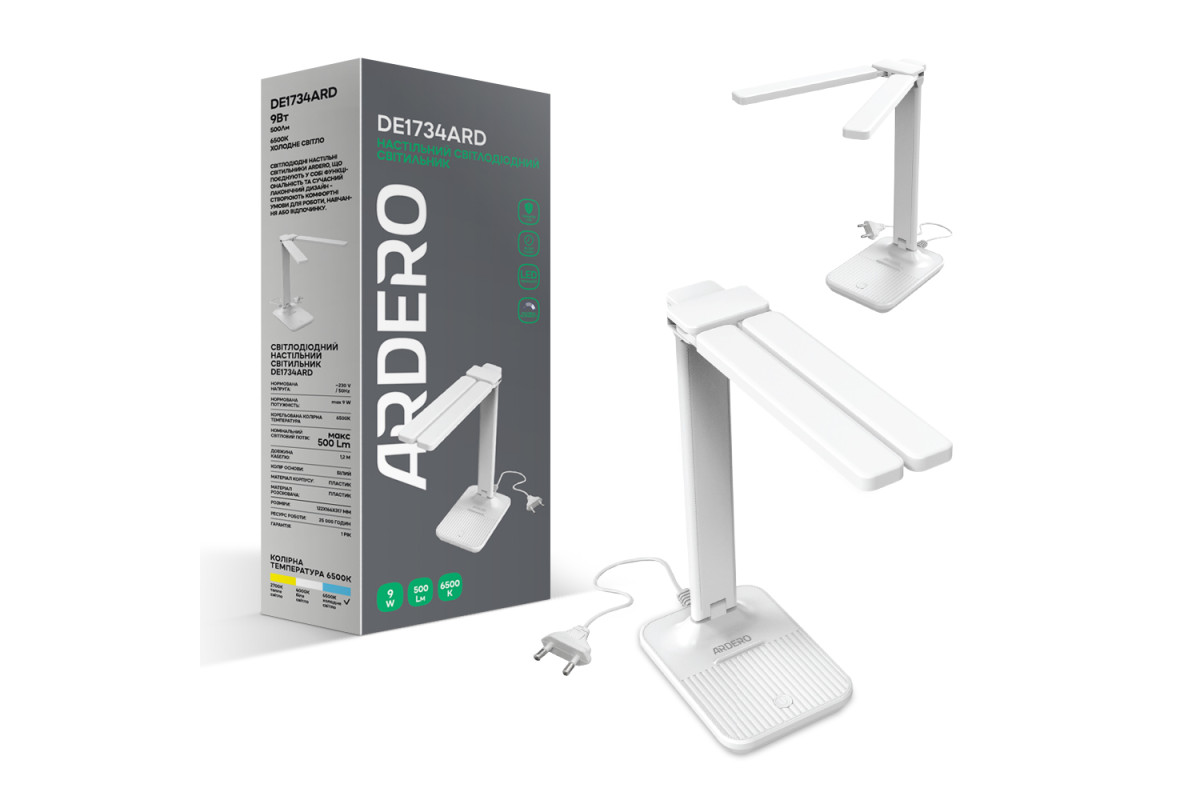 ❓ Як замовити Світлодіодний настільний світильник Ardero DE1734ARD 9Вт 6500K білий з доставкою?