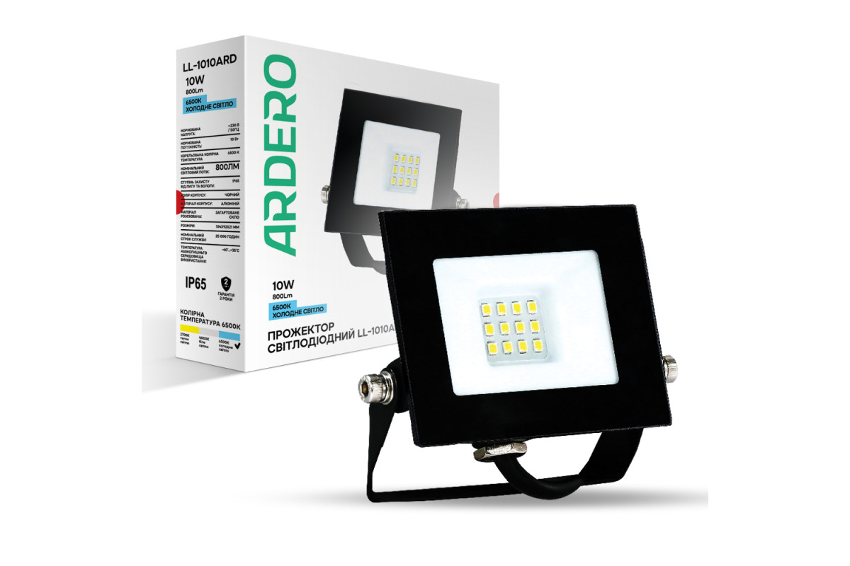 ❓ Як замовити Світлодіодний прожектор Ardero LL-1010ARD 10Вт 6500K чорний з доставкою?