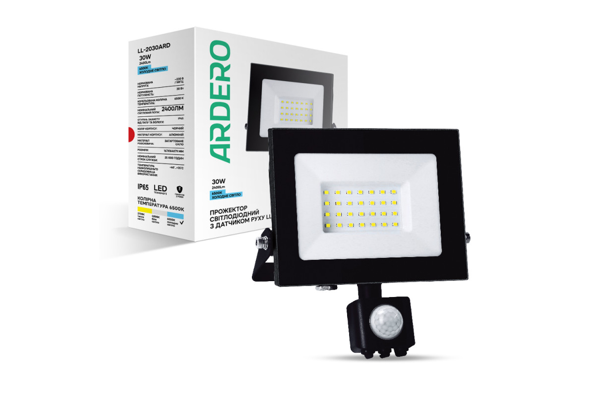 ❓ Як замовити Світлодіодний прожектор Ardero LL-2030ARD 30Вт 6500K з датчиком руху чорний з доставкою?