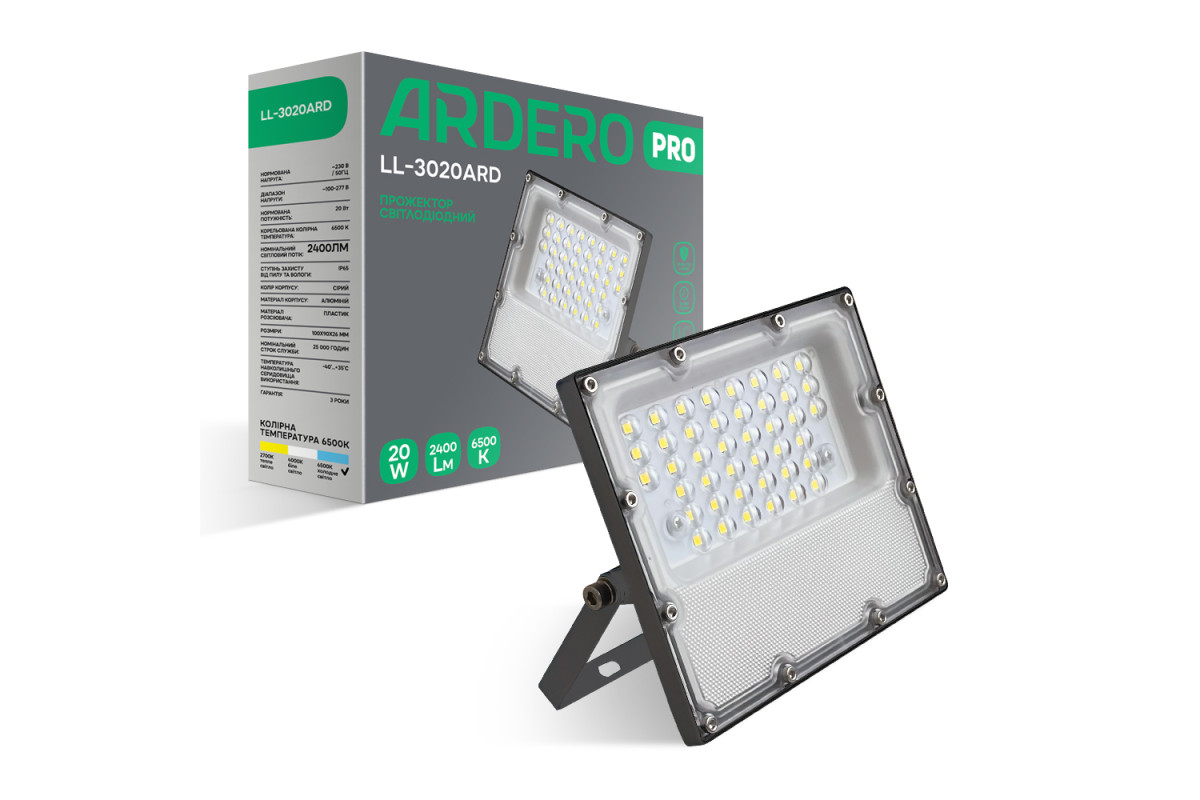 ❓ Як замовити Світлодіодний прожектор Ardero LL-3020ARD PRO 20Вт 6500K сірий з доставкою?