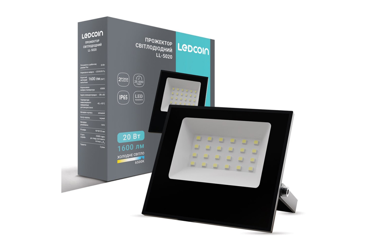 Світлодіодний прожектор Ledcoin LL-5020 20Вт 6500K чорний