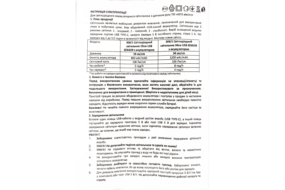 ❓ Хто виробник Світлодіодний світильник 34см USB SENSOR з акумулятором #309/1?