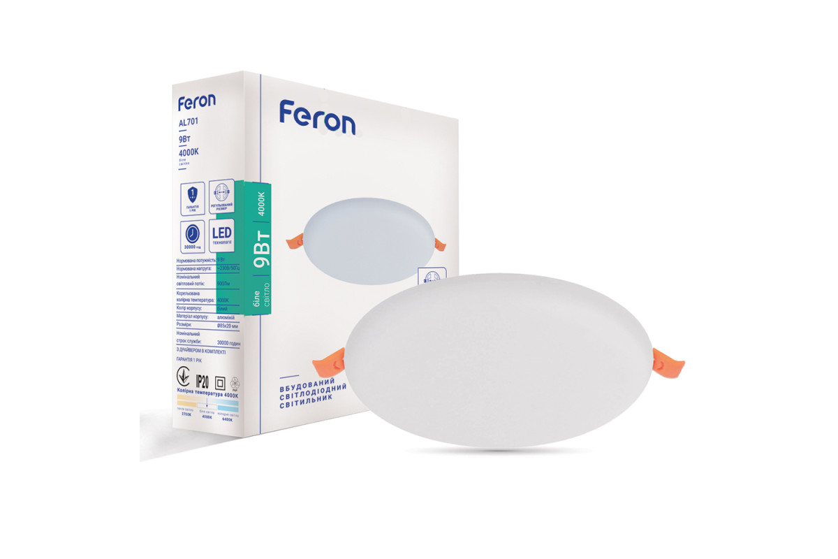 ❓ Як замовити Світлодіодний вбудований світильник Feron AL701 9Вт 4000K білий з доставкою?