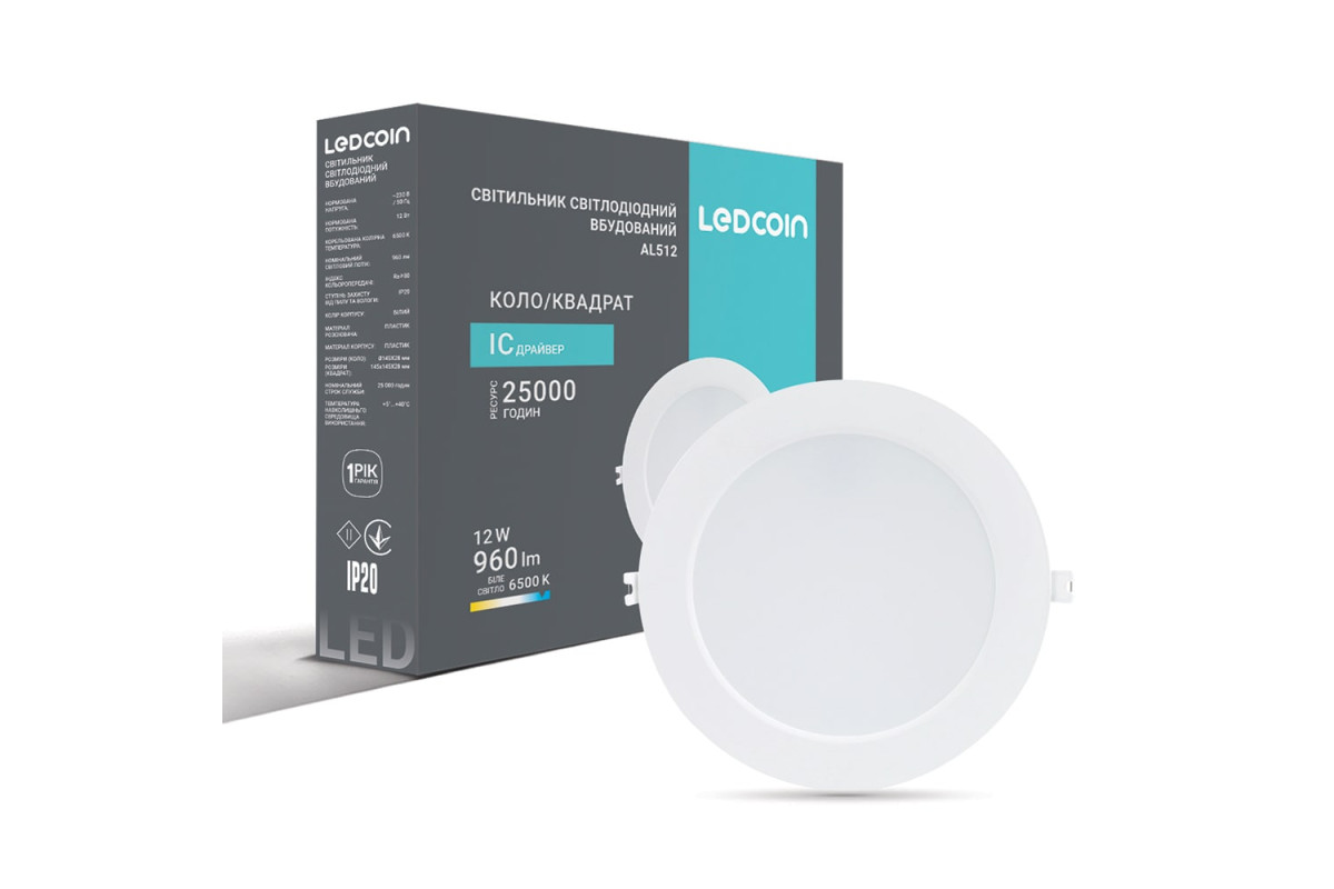 ❓ Яка ціна на Світлодіодний вбудований світильник Ledcoin AL512 12Вт 6500K у 2026 році?