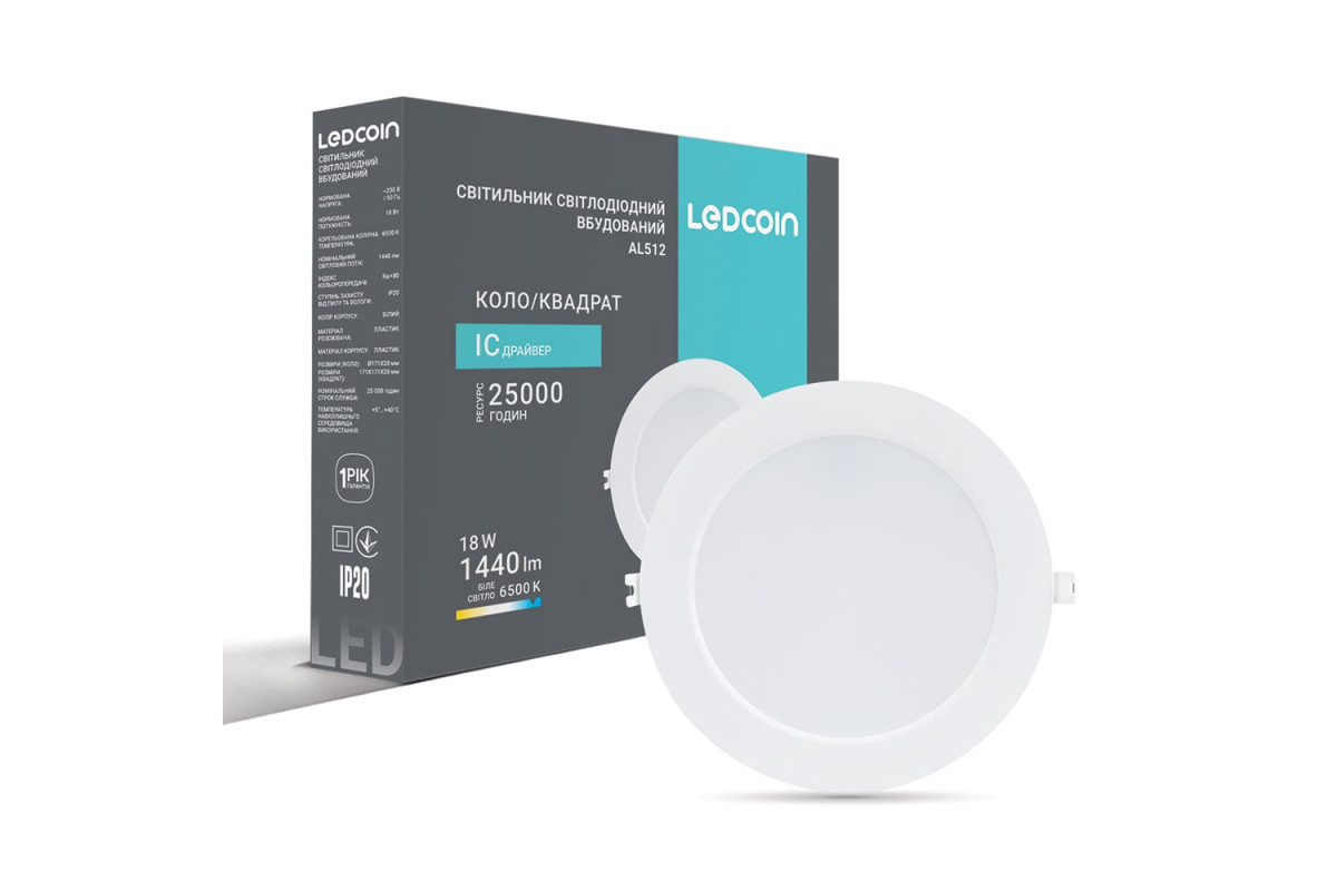 ❓ Яка ціна на Світлодіодний вбудований світильник Ledcoin AL512 18Вт 6500K у 2026 році?