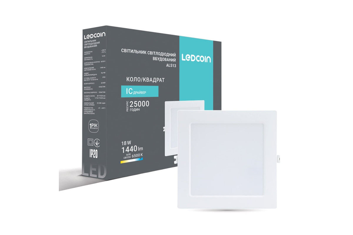 ❓ Хто виробник Світлодіодний вбудований світильник Ledcoin AL513 18Вт 6500K?