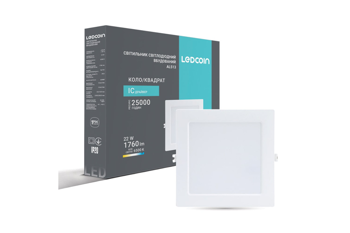 ❓ Яка ціна на Світлодіодний вбудований світильник Ledcoin AL513 22Вт 6500K у 2026 році?