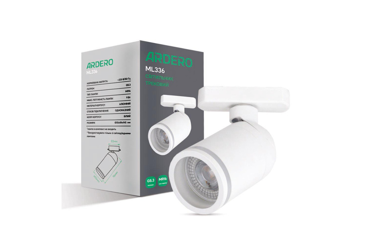 ❓ Хто виробник Трековий світильник Ardero ML336 під лампу білий?