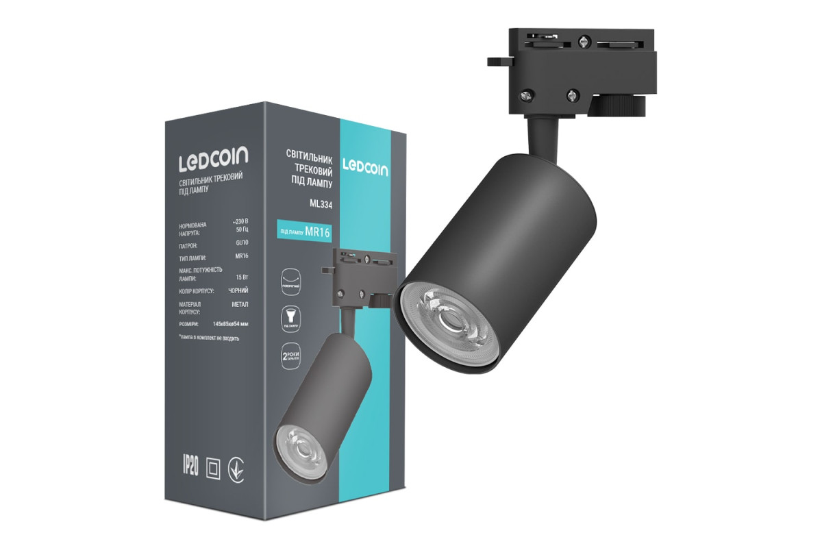 ❓ Як замовити Трековий світильник Ledcoin ML334 під лампу чорний з доставкою?