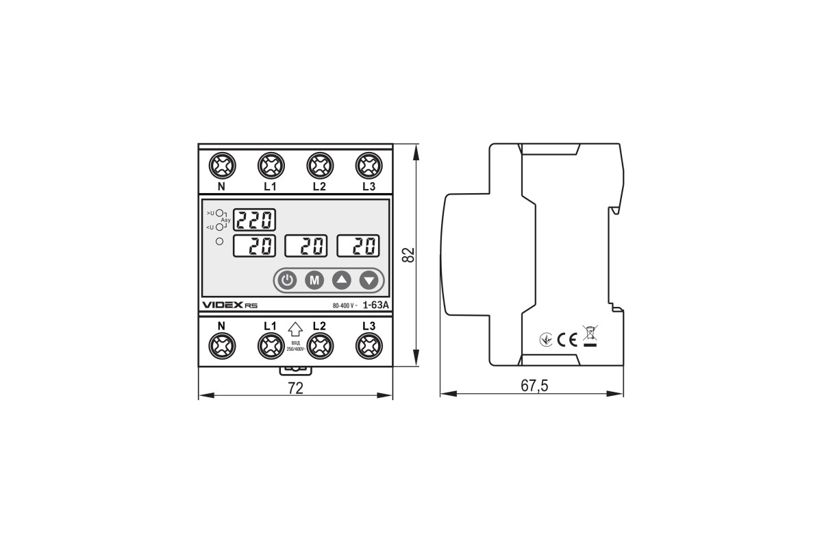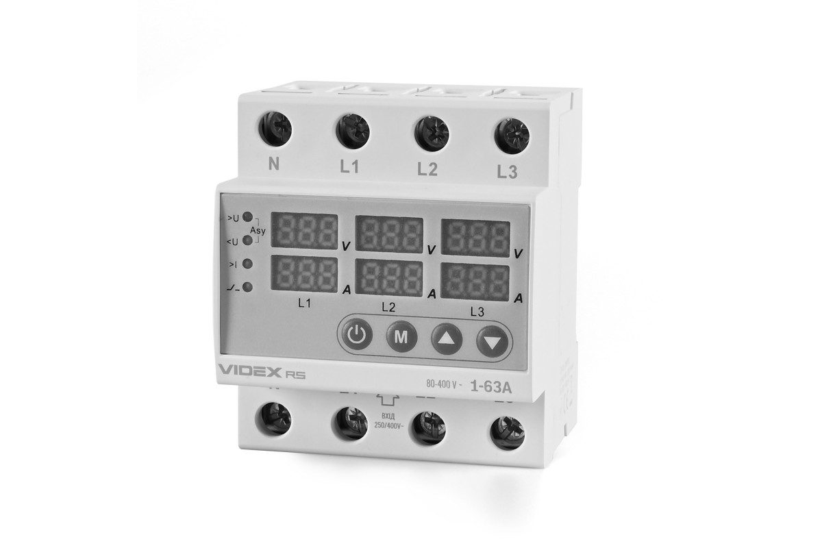 Трифазне реле контролю напруги та струму VIDEX RESIST 145-300В 1-63А