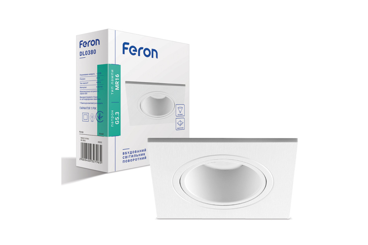 ❓ Як замовити Вбудований поворотний світильник Feron DL0380 під лампу білий з доставкою?