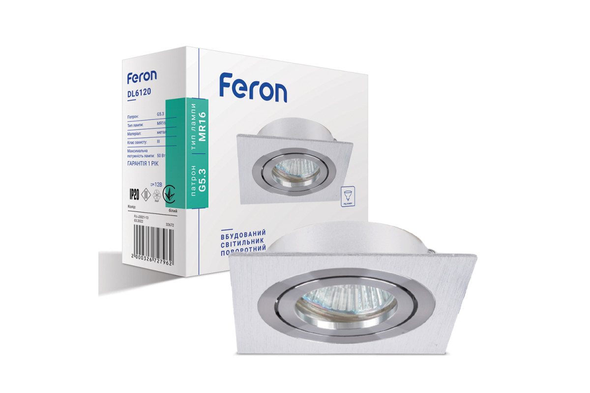 ❓ Як замовити Вбудований поворотний світильник Feron DL6120 під лампу білий з доставкою?