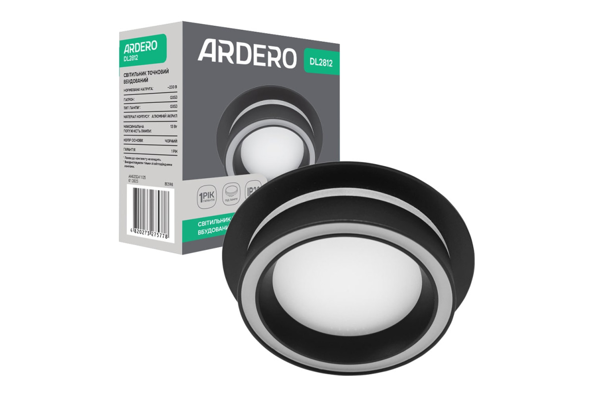 ❓ Хто виробник Вбудований світильник Ardero DL2812 під лампу чорний?
