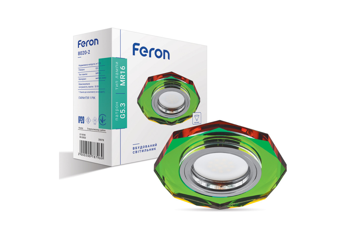 ❓ Як замовити Вбудований світильник Feron 8020-2 під лампу 5-мультиколор з доставкою?