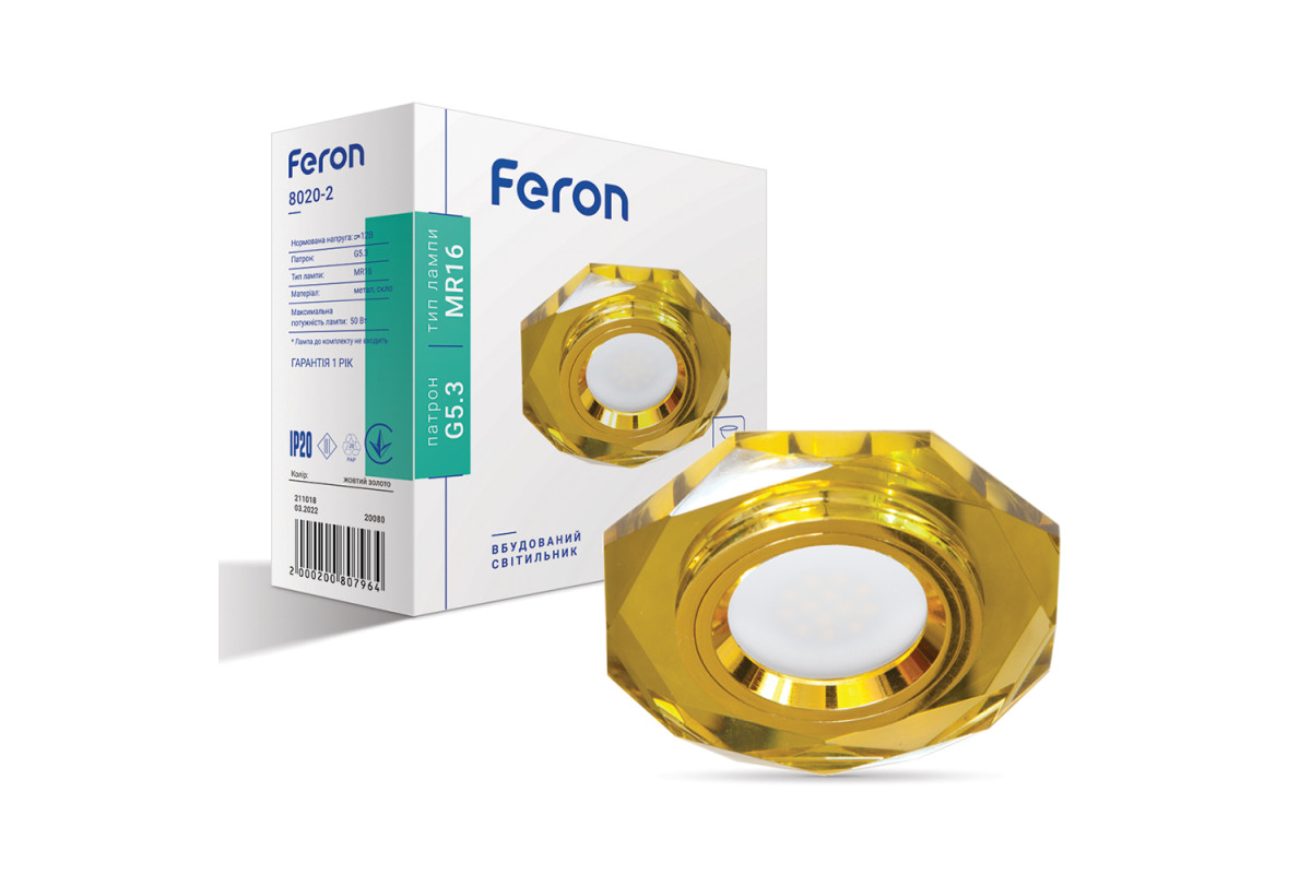 ❓ Як замовити Вбудований світильник Feron 8020-2 під лампу жовтий золото з доставкою?