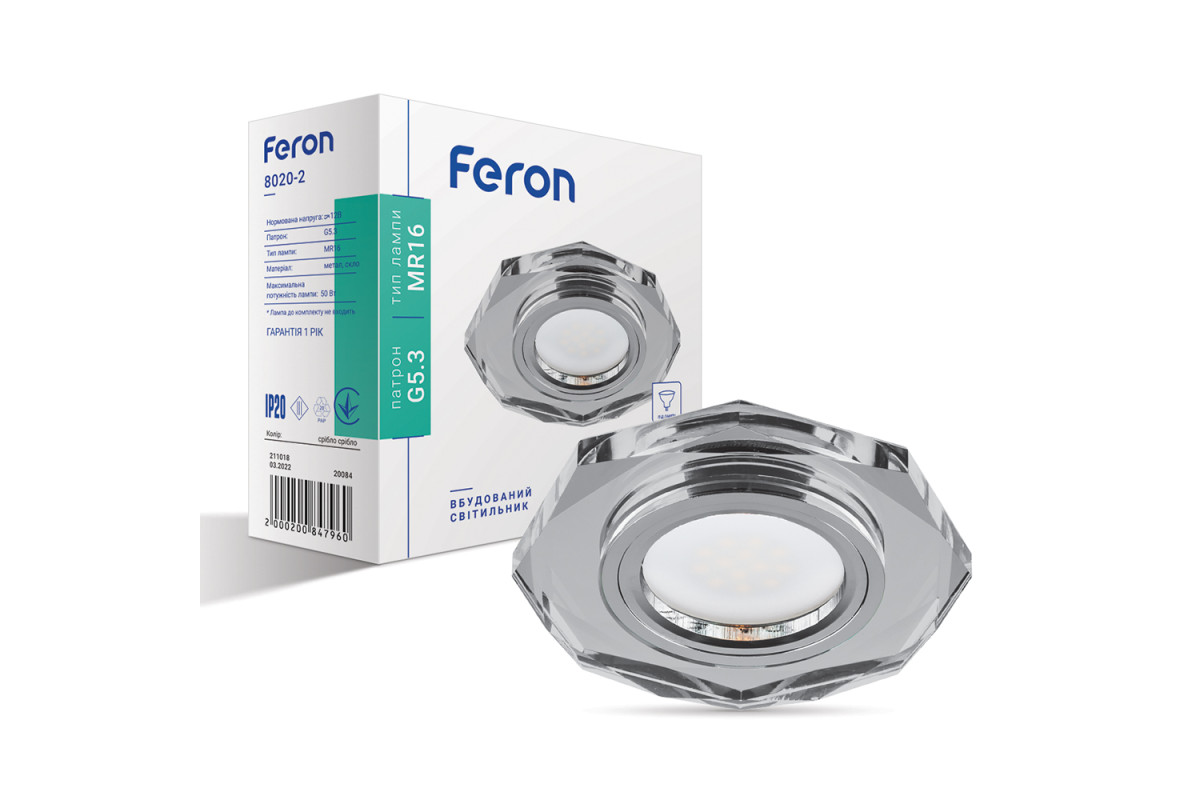 ❓ Як замовити Вбудований світильник Feron 8020-2 під лампу срібло з доставкою?