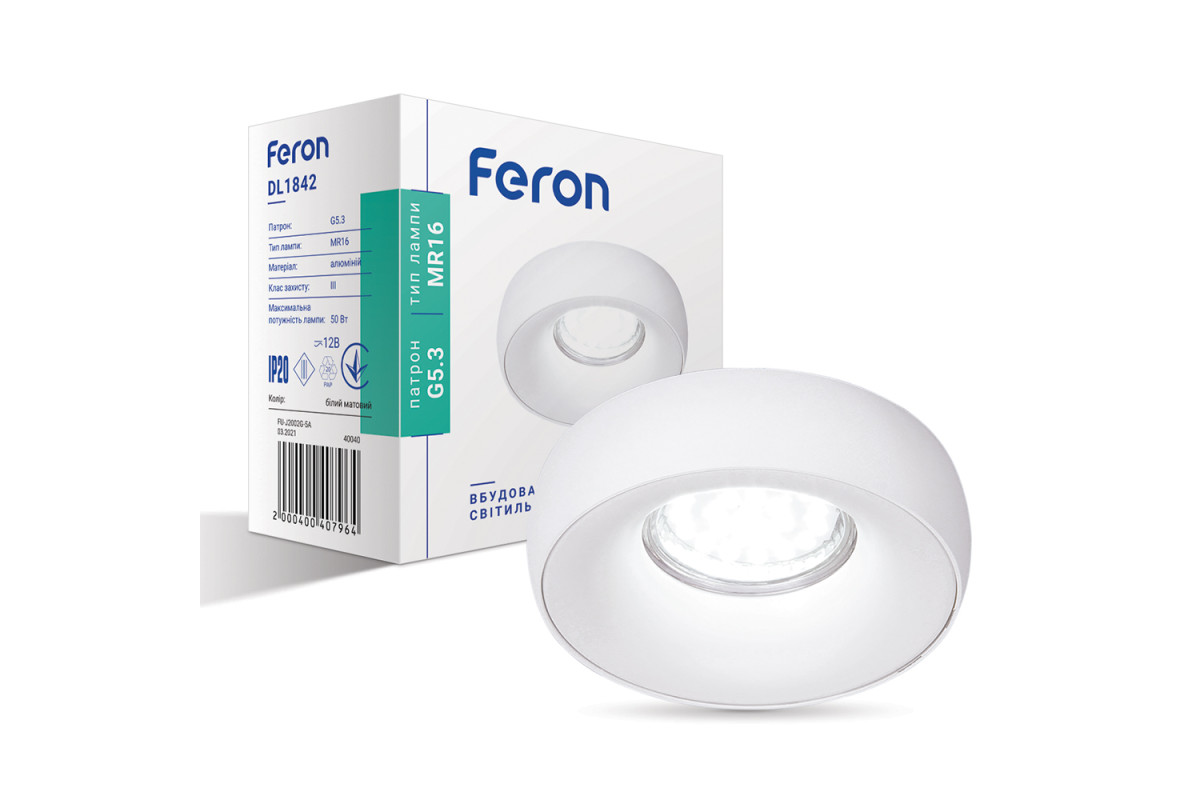❓ Як замовити Вбудований світильник Feron DL1842 під лампу білий матовий з доставкою?