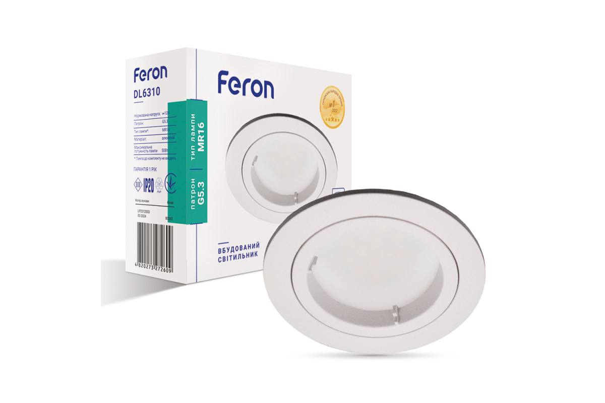 ❓ Як замовити Вбудований світильник Feron DL6310 під лампу білий з доставкою?