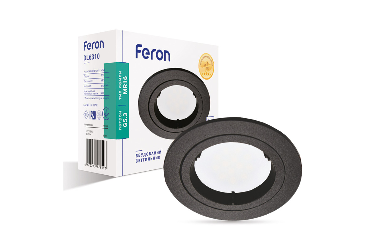 ❓ Як замовити Вбудований світильник Feron DL6310 під лампу чорний з доставкою?