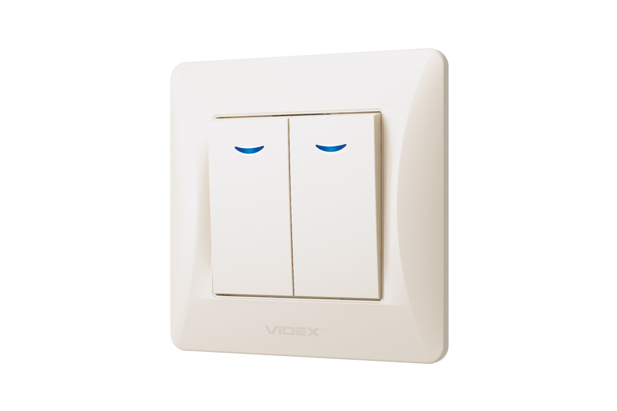 Вимикач двоклавішний з підсвіткою кремовий VIDEX BINERA