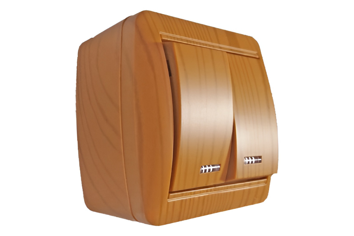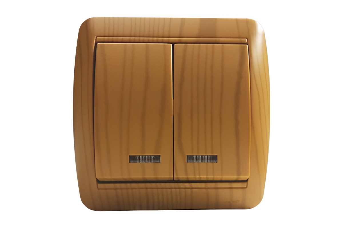 Вимикач накладний 2-й + LED підсвітка LEMANSO Магнолія вільха LMR2110