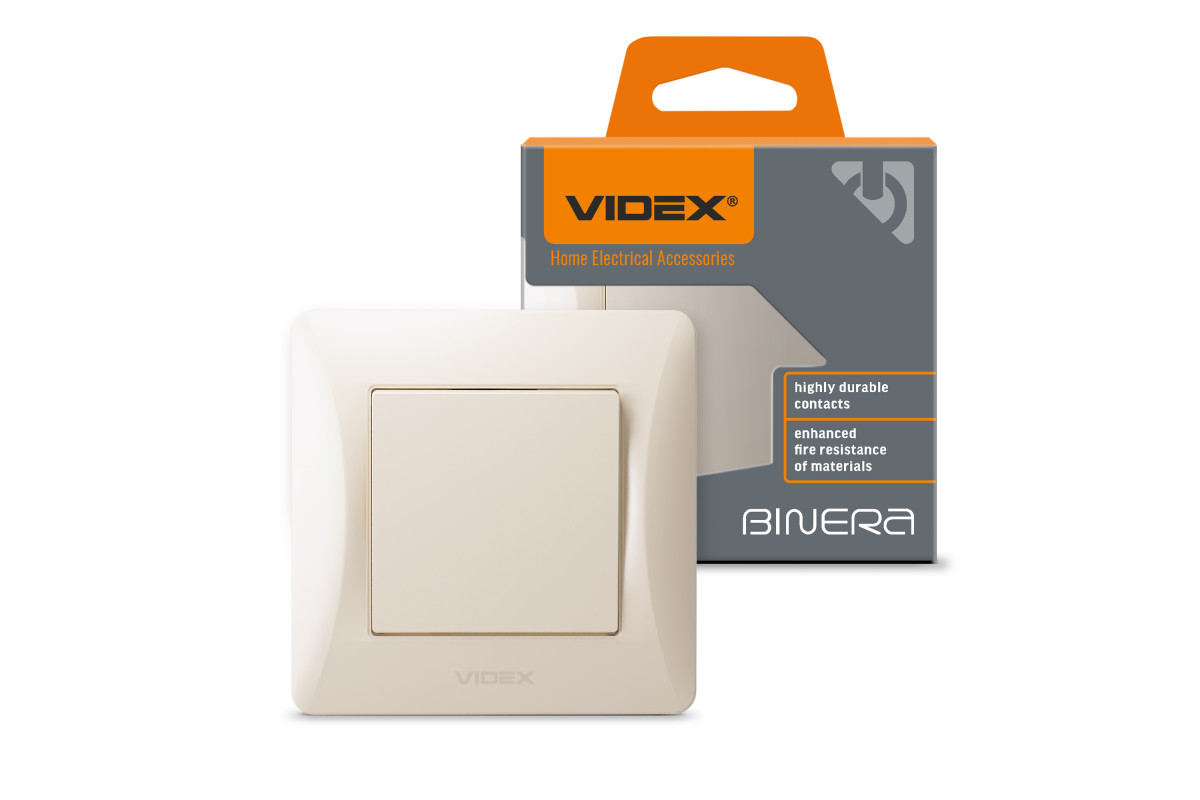 Вимикач одноклавішний кремовий VIDEX BINERA