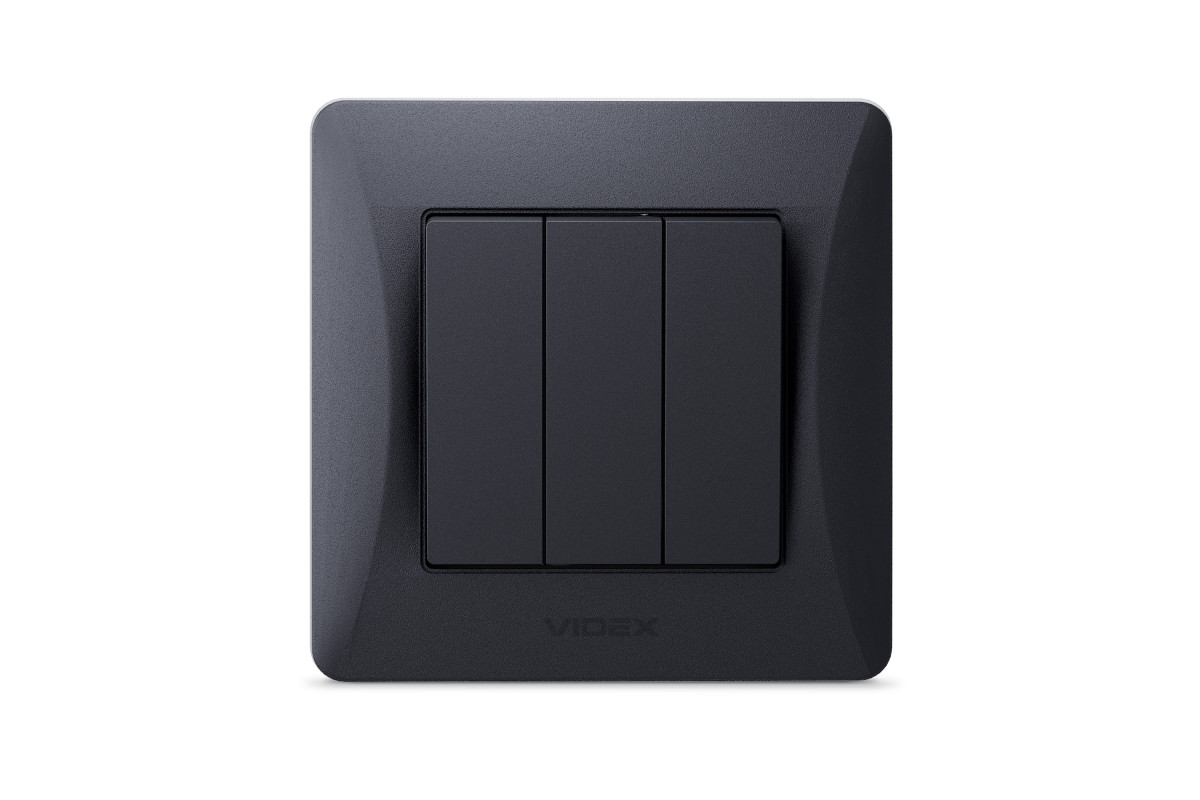 Вимикач трьохклавішний чорний графіт VIDEX BINERA