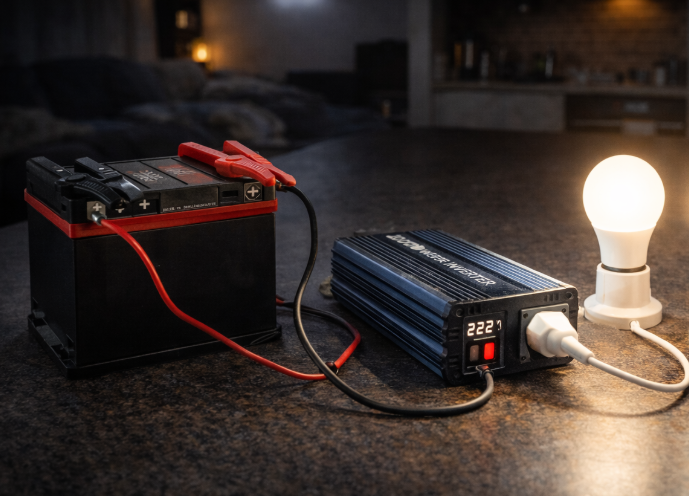 Якщо потрібно живити лише освітлення та невелику електроніку, то автомобільний інвертор з правильно підібраним акумулятором глибокого циклу може вистачити на кілька годин, але потрібно враховувати потужність навантаження та ємність батареї.