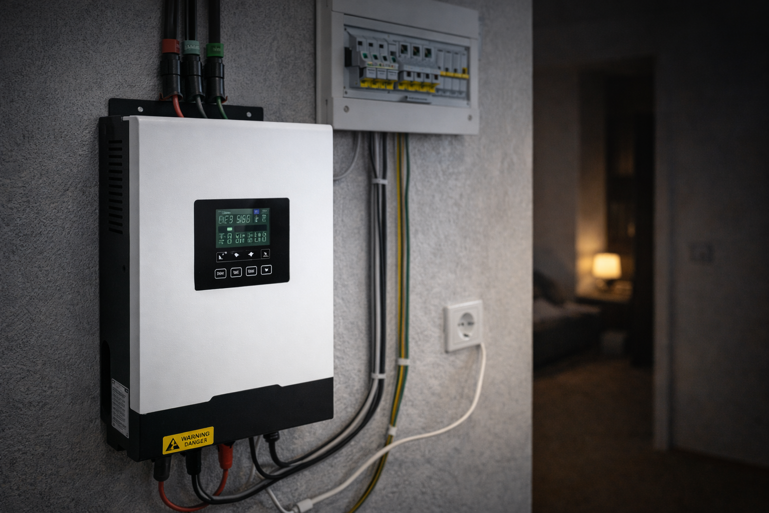 Гібридний інвертор — це пристрій, який є частиною системи енергопостачання квартири, де резервний акумулятор живить освітлення, роутери та іншу техніку, а при стабільній мережі акумулятори заряджаються та підтримуються в готовності