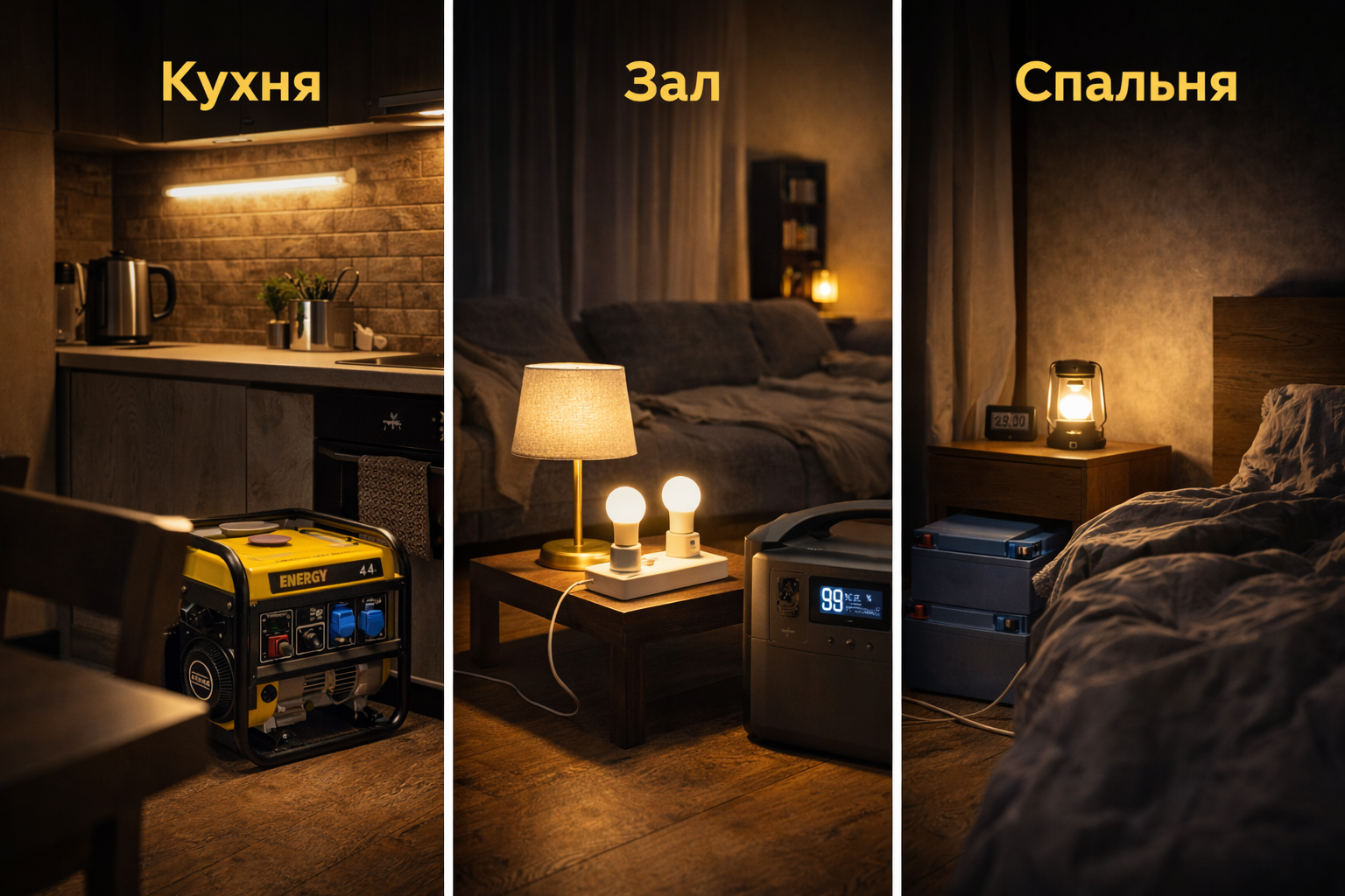 Якщо відключення триває кілька годин, резервне освітлення у квартирі повинно забезпечувати можливість нормального перебування протягом всього часу. Це означає стабільне світло в санвузлі, на кухні та в житловому приміщенні, роботу опалювальних елементів в холодну пору доби тощо.