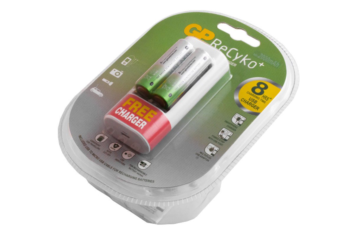 Зарядний пристрій GP ReCyko+U211 с USB+2 акумулятори HR6 2000mAh (2 канали)
